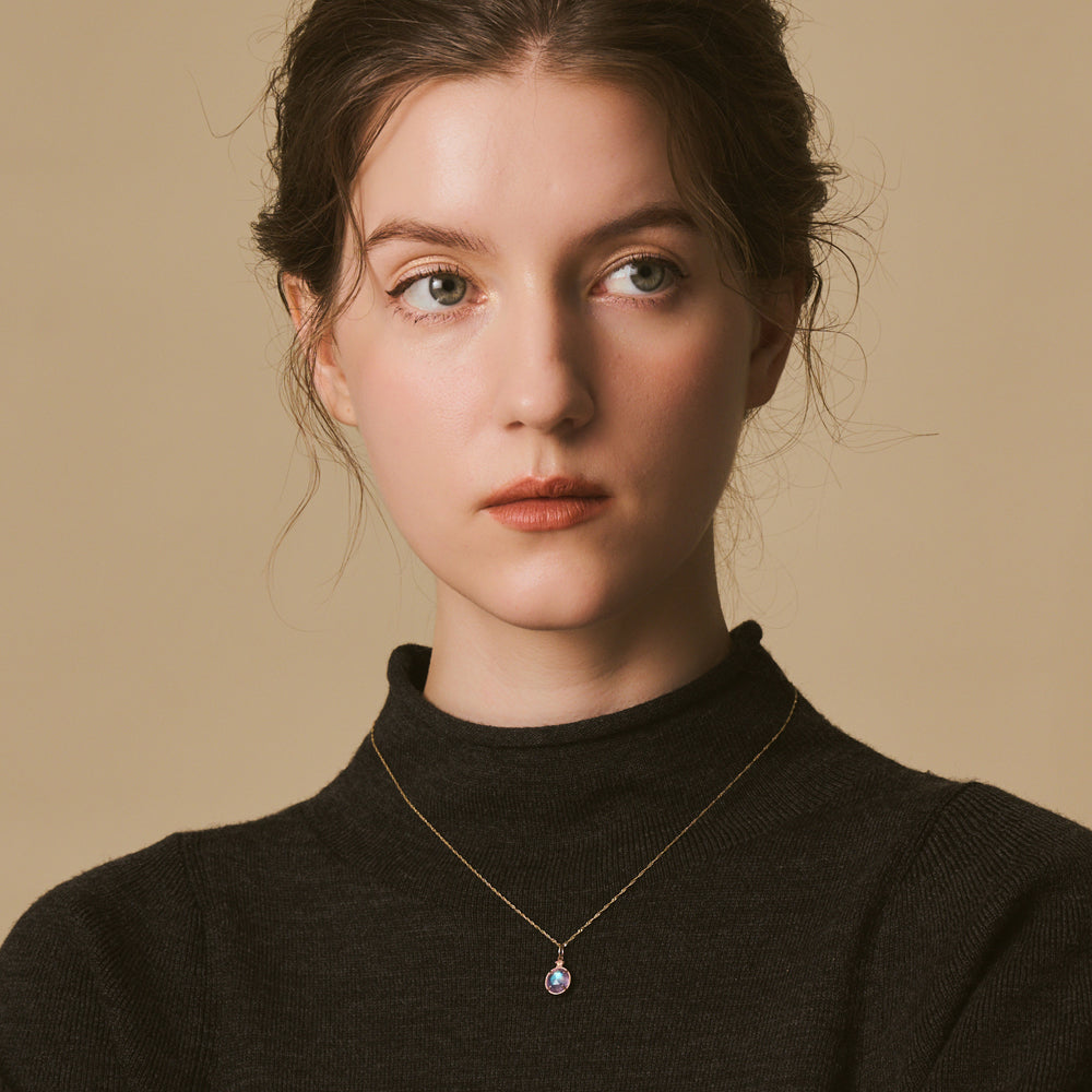 The doublet stone, which is particular about the color that evokes the scent of lavender, is made by layering the rainbow light of labradorite on chic amethyst.